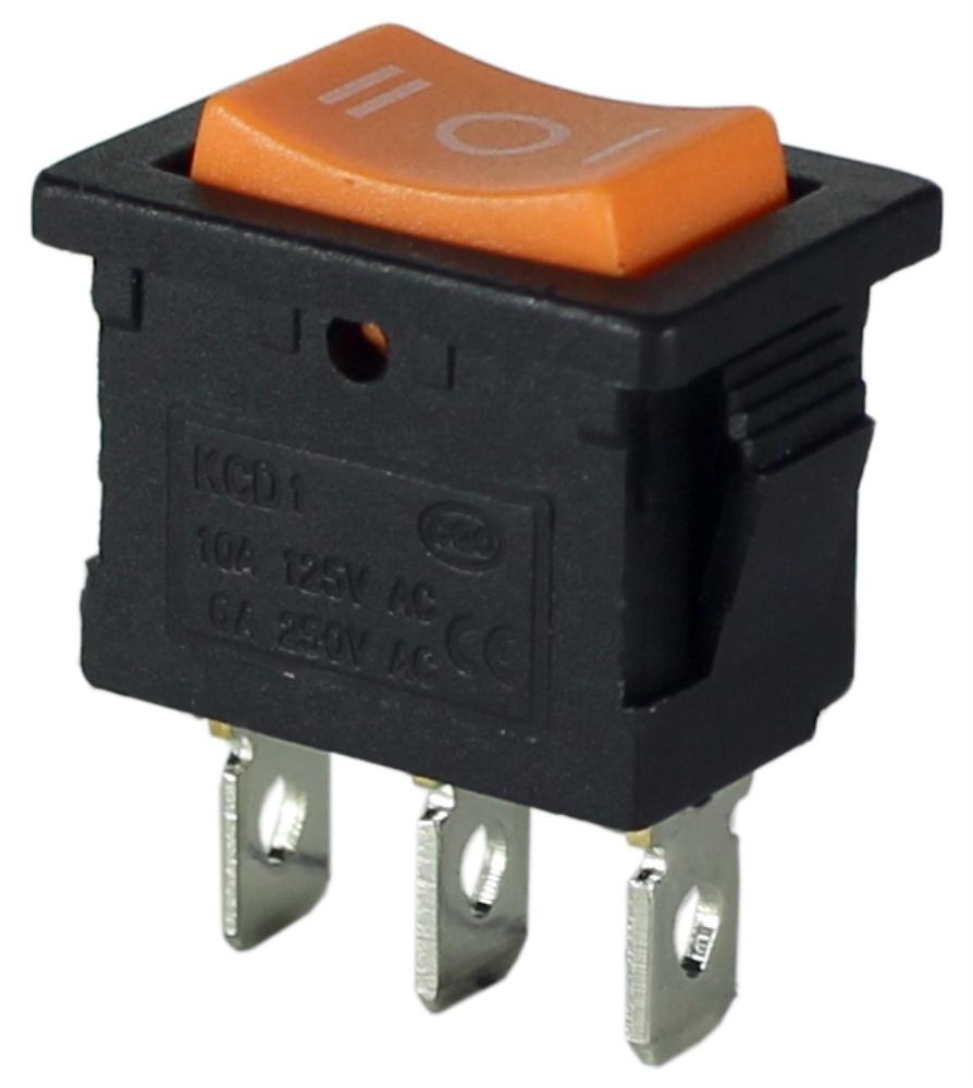 ПЕРЕКЛЮЧАТЕЛЬ УСТ.:20*13мм 3-ПОЛОЖЕНИЯ С/Ф 3PIN-4.8мм ON-OFF-ON 6A KCD1-103-2 ОРАНЖЕВЫЙ
