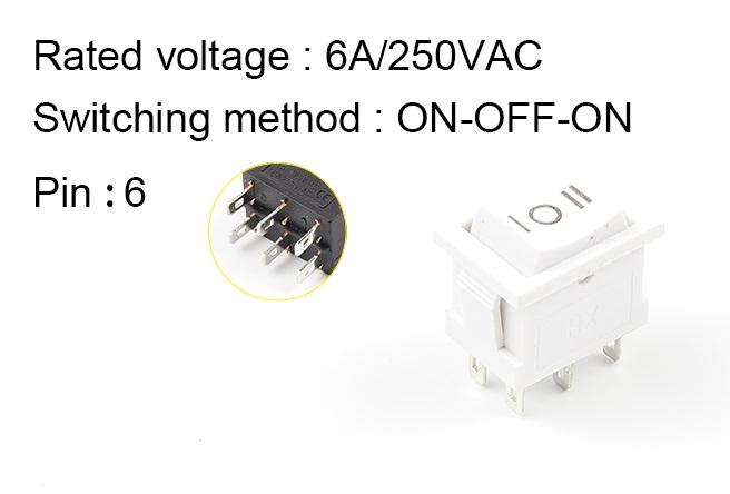 ПЕРЕКЛЮЧАТЕЛЬ УСТ.:20*13мм 3-ПОЛОЖЕНИЯ С/Ф 6PIN-2.8мм ON-OFF-ON 6A БЕЛЫЙ MRS 203-3C6
