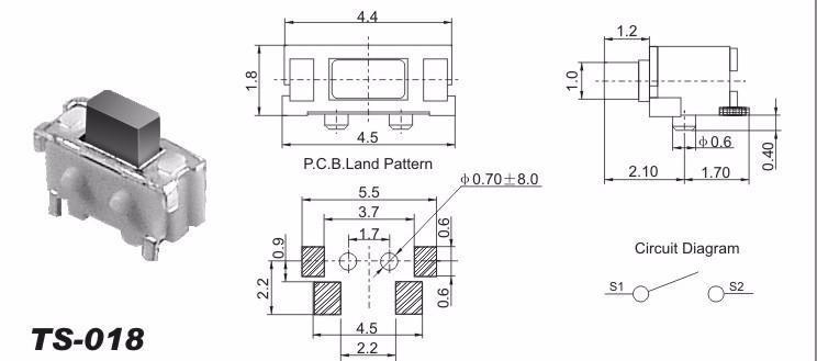 КНОПКА IT-1198E 1.8x4.5x3.8mm TS1224VW / TS-1224VW / TS-018 без направляющих