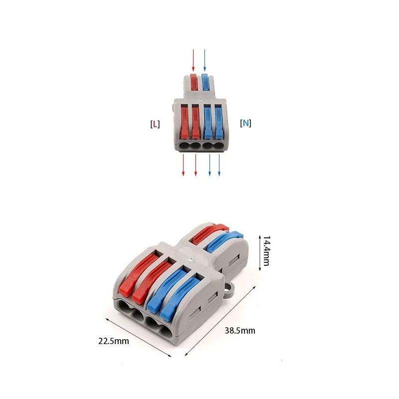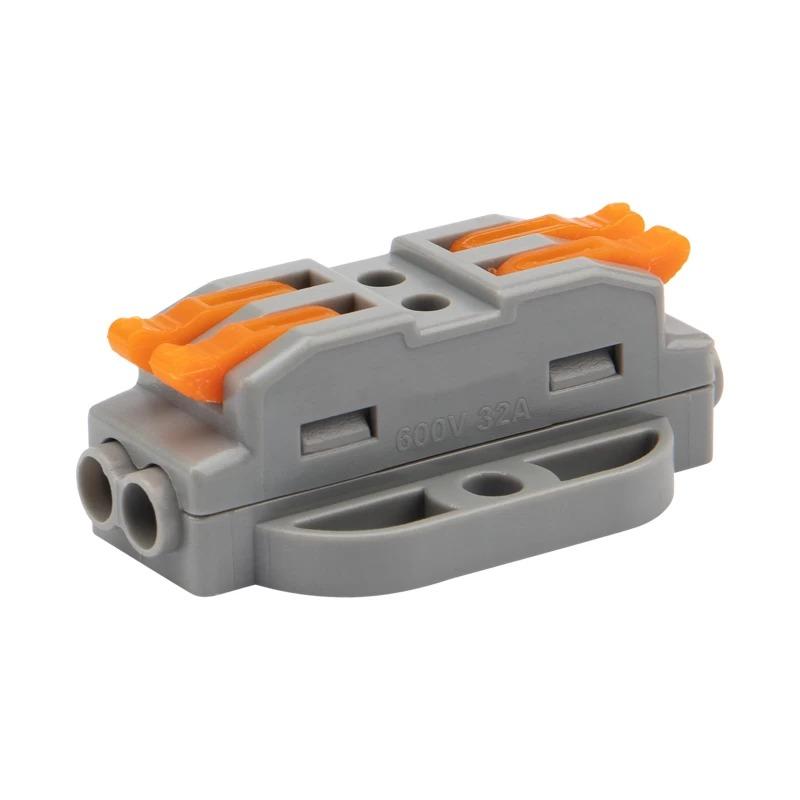 ЭКСПРЕСС КЛЕММА С РЫЧАГАМИ ДВУХСТОРОННЯЯ 2* 0,08-2,5мм2 (WAGO аналог) - СЕРАЯ с креплением