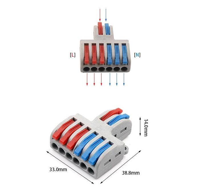 ЭКСПРЕСС КЛЕММА С РЫЧАГАМИ РАЗВЕТВИТЕЛЬ 1>3 6* 0,08-2,5мм2 (WAGO аналог) - СЕРАЯ