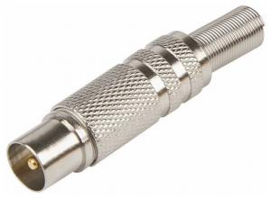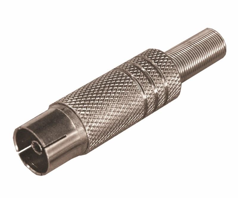РАЗЪЕМ TV-M НА КАБЕЛЬ МЕТАЛЛ, КРЕПЛЕНИЕ ВИНТ, ПРИЖИНА МЕТАЛЛ