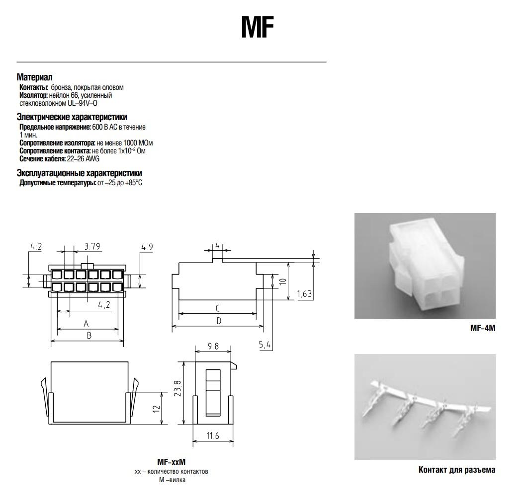 РАЗЪЕМ 4,20ММ ВИЛКА НА КАБЕЛЬ 2*03 MF-2*03M ОБЖ