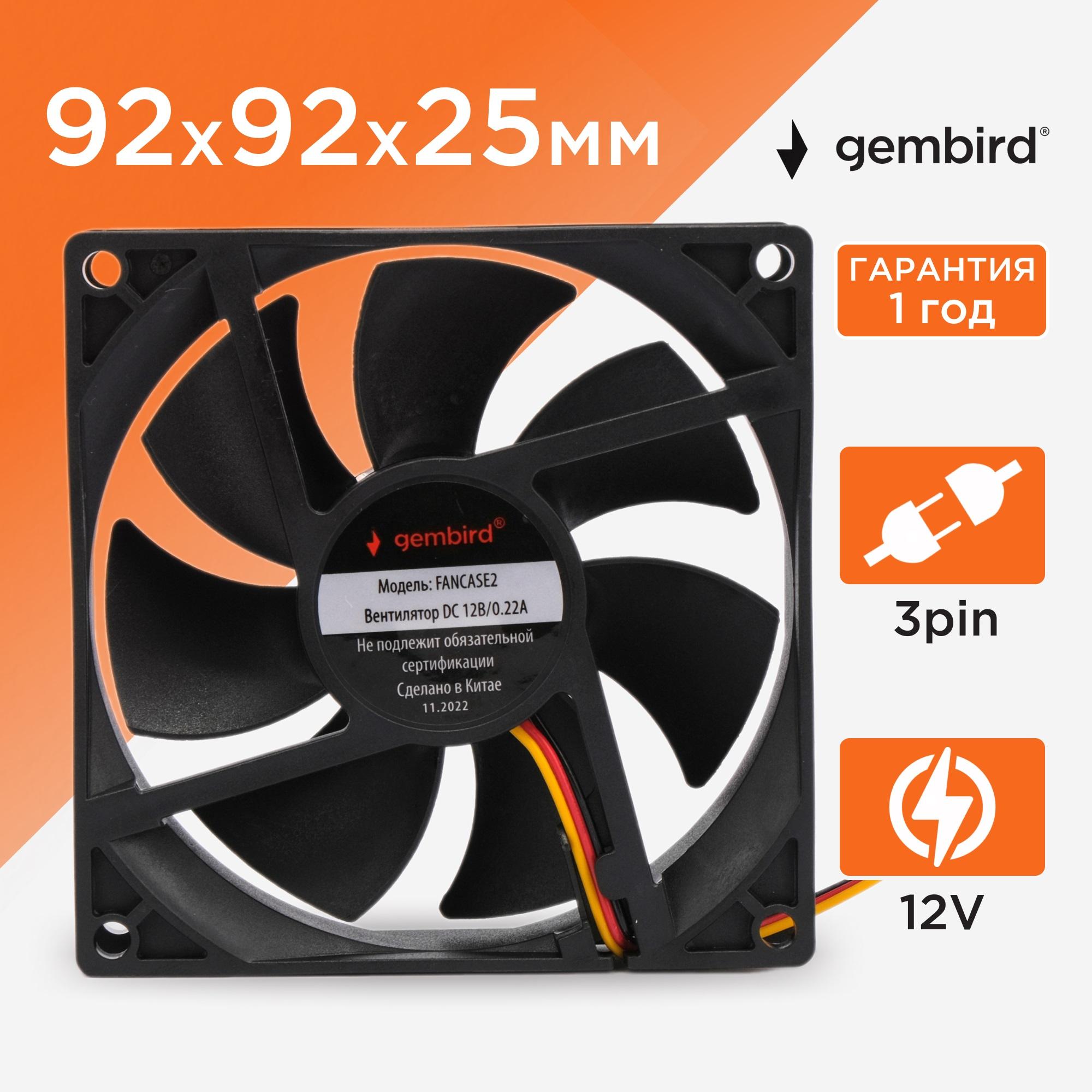 ВЕНТИЛЯТОР 92*92*25 12V 0.22A Gembird FANCASE2, 3pin, провод 0.3м ПОДШИПНИК СКОЛЬЖЕНИЯ(втулка)