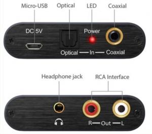 Конвертер Цифро>Аналоговый Аудио Оптический-Коаксиальный RCA Toslink Сигнал в 2*RCA(F)+выход наушников+регулятор громкости+ПДУ+кнопки
