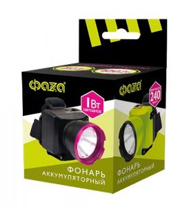 ФОНАРЬ АККУМ. Фаzа AccuFH7-L1W-bk 1LED 1W 2 режима черн+розовый