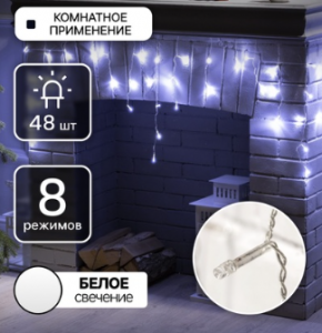 Гирлянда "Бахрома" БЕЛАЯ, Ш:1.8м, В:0.5м, Н.С. LED-48-220V, 8 режимов