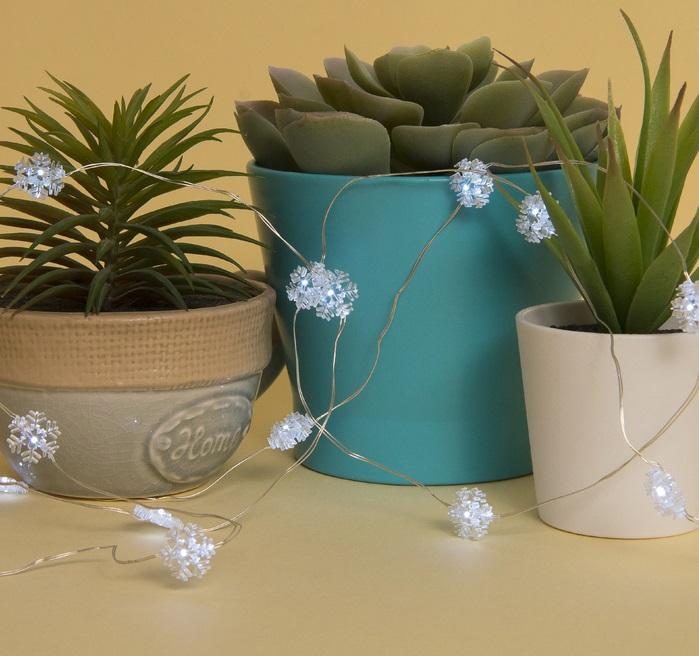 ГИРЛЯНДА НИТЬ, 3.0м, БЕЛАЯ, "Роса" с насад. "Снежинка", LED-30-6V, 2*LR2032(в комплекте)