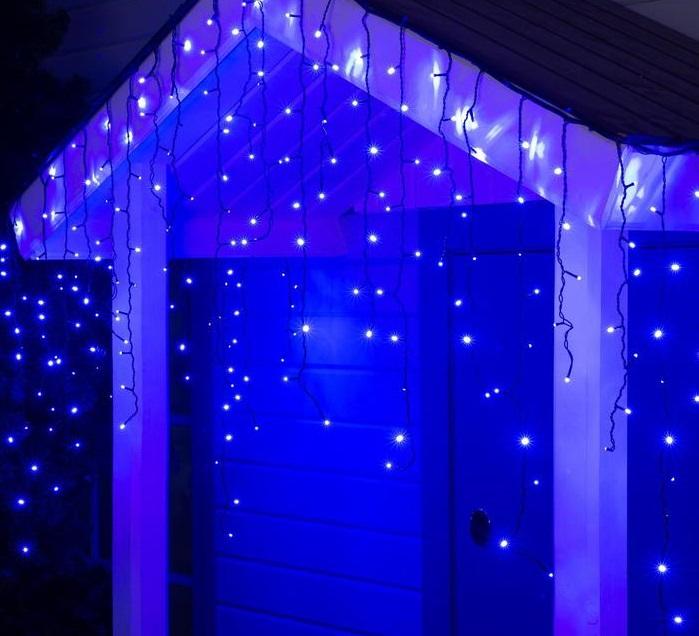 Гирлянда "Бахрома" уличная СИНЯЯ, Ш:3,5м, В:0,8м, УМС(2pin), 100LED (черный шнур) (100)