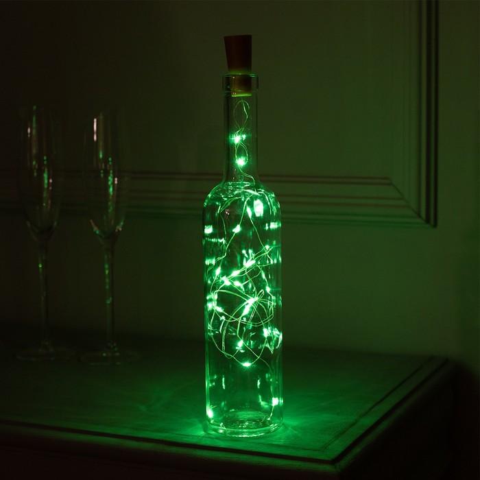 ГИРЛЯНДА НИТЬ, 2.0м, ЗЕЛЕНАЯ, "Роса" "Бутылочная пробка" 2.0м, LED-20-4.5V, 3*LR44 в комплекте, 2433905