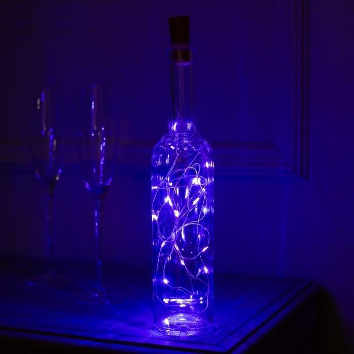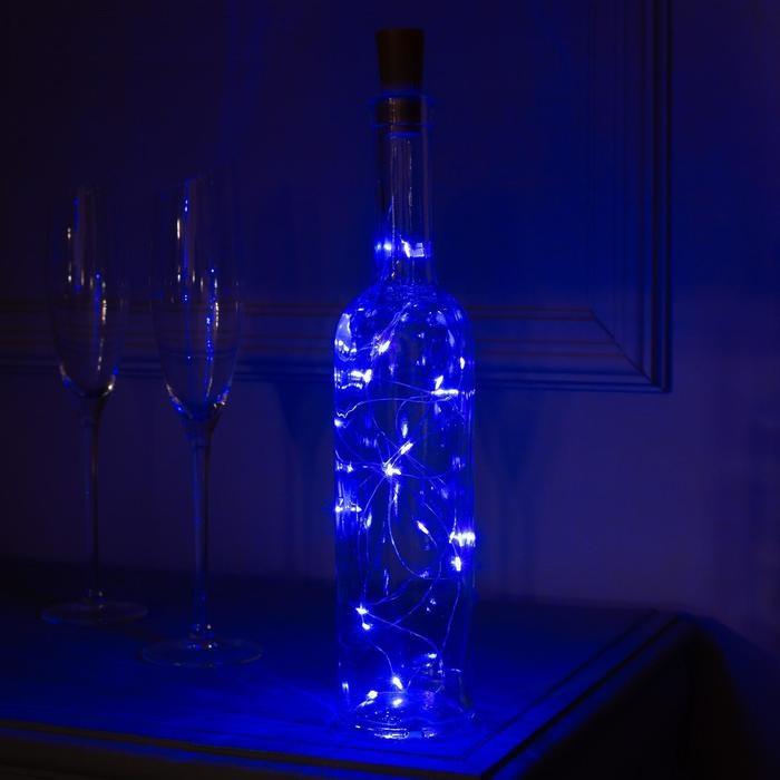 ГИРЛЯНДА НИТЬ, 2.0м, СИНЯЯ, "Роса" "Бутылочная пробка" LED-20-4.5V, 3*LR44 в комплекте, 2433903