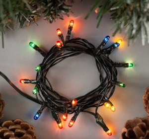 ГИРЛЯНДА НИТЬ, 3.0м, РАЗНОЦВЕТНАЯ, "Роса" (V-5м) 30 светодиодов (2 мм) 3 реж., прозрачн. шнур, от батар. G13