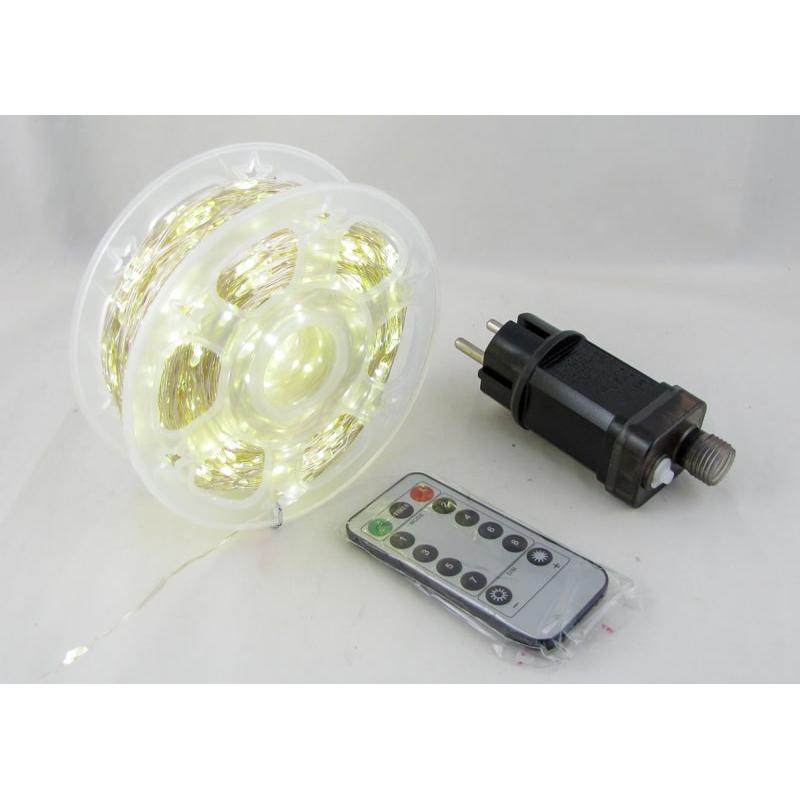 ГИРЛЯНДА НИТЬ,_100.0м, БЕЛАЯ ТЕПЛАЯ, "Роса" (V-120м) (2мм) 8 реж. прозрачн. шнур с пультом, на катушке