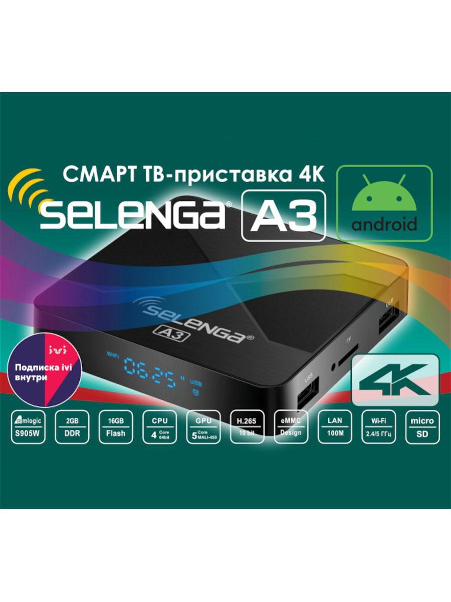 ТВ ПРИСТАВКА СМАРТ 4К SELENGA A3 2Гб-ОЗУ, 16Гб-eMMC