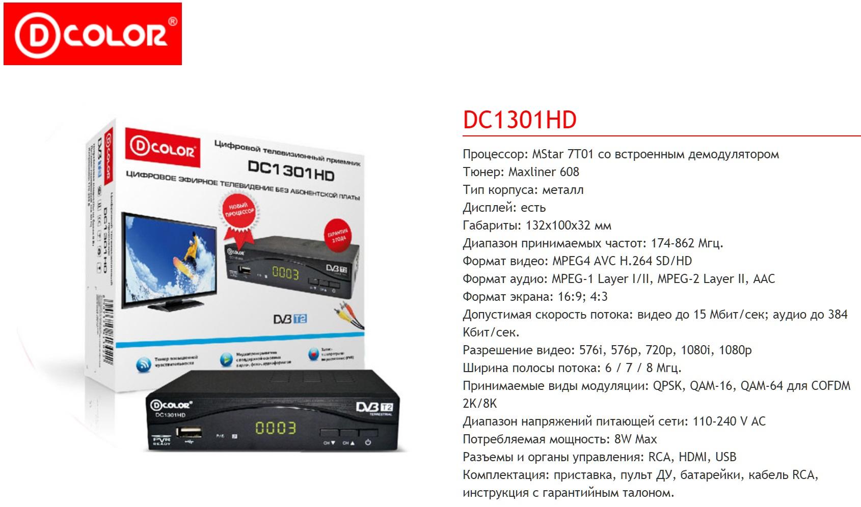 ТВ ПРИСТАВКА ЦИФРОВАЯ DVB-T2 D-COLOR DC1301HD