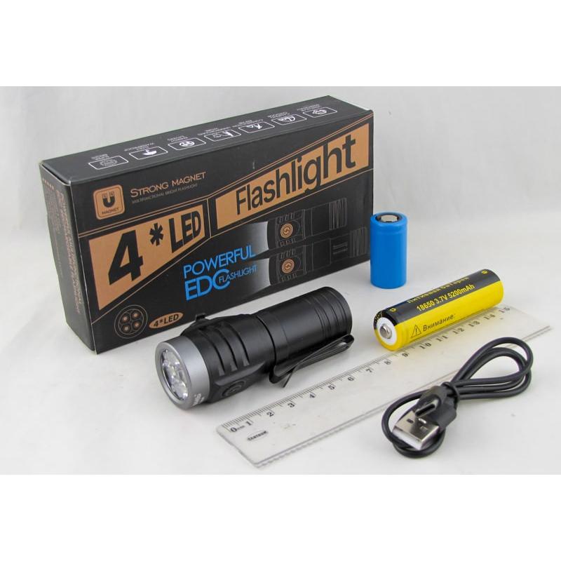 ФОНАРЬ ручной аккумуляторный H-3096 (4 линзы, акк.18650/16340 + шнур TYPE-C) с магнитом