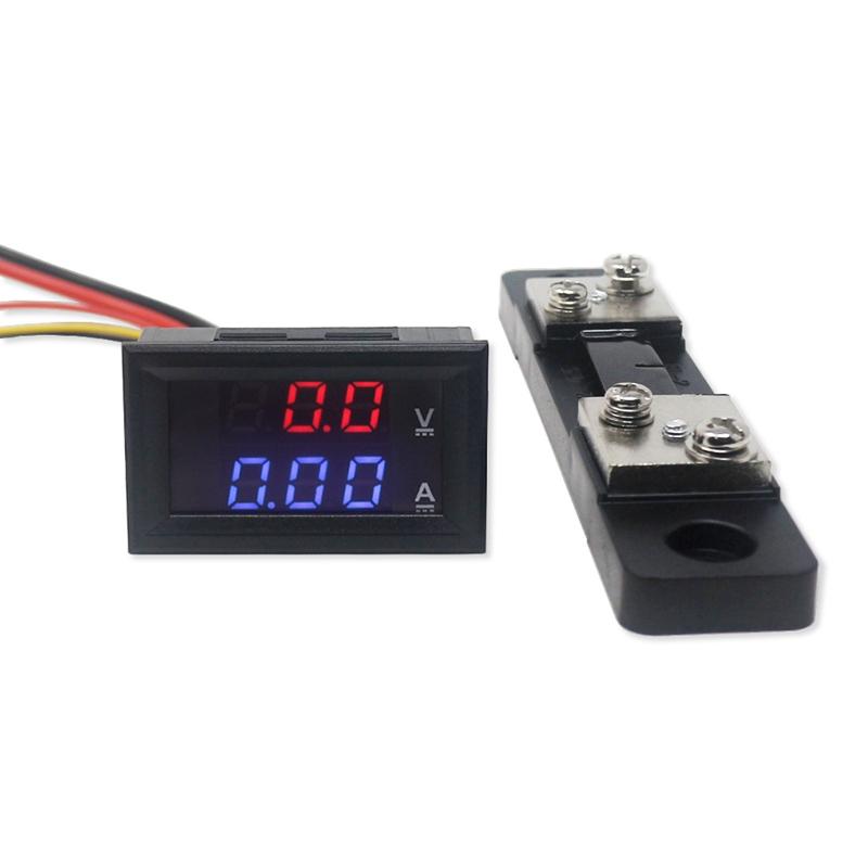 ИЗМЕРИТЕЛЬНАЯ ПАНЕЛЬ АМПЕРМЕТР + ВОЛЬТМЕТР МОДУЛЬ 50А 100В с ШУНТОМ RED and BLUE