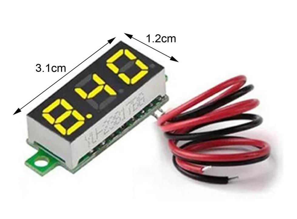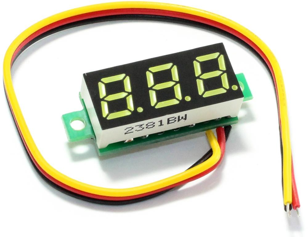 ИЗМЕРИТЕЛЬНАЯ ПАНЕЛЬ ВОЛЬТМЕТР 0.28"(22.5*10мм, крепление 26мм) 0-100VDC, 3pin, питание 4-40VDC (ЖЕЛТЫЙ)