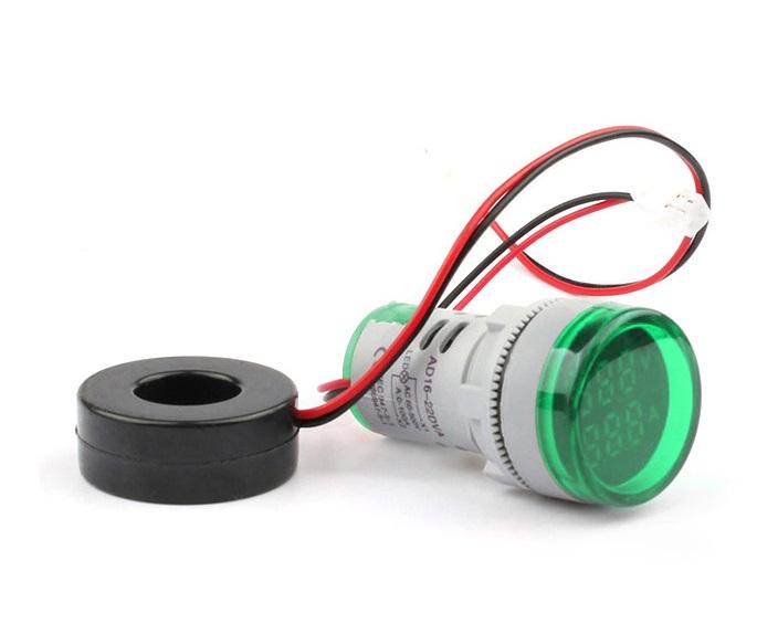 ИЗМЕРИТЕЛЬНАЯ ПАНЕЛЬ АМПЕРМЕТР + ВОЛЬТМЕТР МОДУЛЬ D22мм 100А, ADC 60V - 500V, АМПЕРМЕТР БЕСКОНТАКТНЫЙ, ЗЕЛЕНАЯ