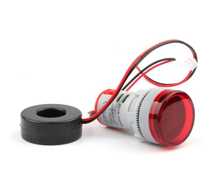 ИЗМЕРИТЕЛЬНАЯ ПАНЕЛЬ АМПЕРМЕТР + ВОЛЬТМЕТР МОДУЛЬ D22мм 100А, ADC 60V - 500V, АМПЕРМЕТР БЕСКОНТАКТНЫЙ, КРАСНАЯ