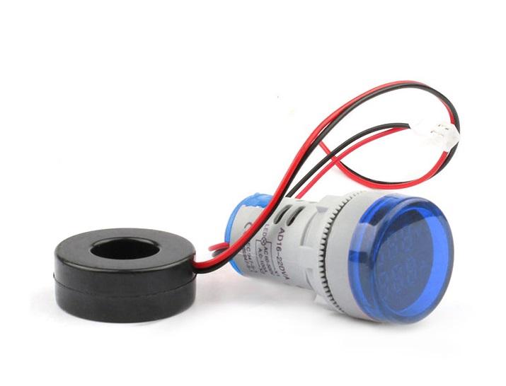 ИЗМЕРИТЕЛЬНАЯ ПАНЕЛЬ АМПЕРМЕТР + ВОЛЬТМЕТР МОДУЛЬ D22мм 100А, ADC 60V - 500V, АМПЕРМЕТР БЕСКОНТАКТНЫЙ, СИНЯЯ