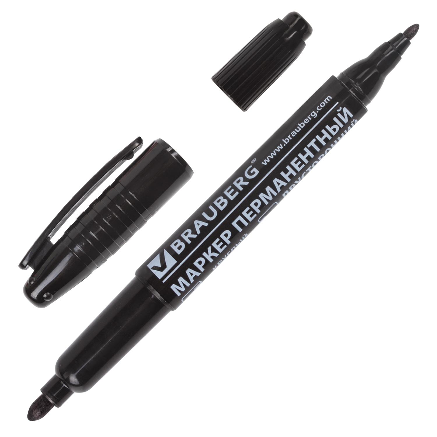 МАРКЕР ПЕРМАНЕНТНЫЙ 2.00-4.00ММ черный Brauberg (нестираемый) двусторонний наконечник круглый
