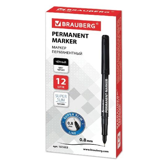 МАРКЕР ПЕРМАНЕНТНЫЙ 0.8ММ ЧЕРНЫЙ Brauberg "Super Slim" тонкий металлический наконечник