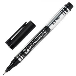 МАРКЕР ПЕРМАНЕНТНЫЙ 0.5ММ черный НЕСТИРАЕМЫЙ BRAUBERG "Jet", супертонкий метал. наконечник