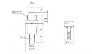 КНОПКА PBS110 / PBS10B-2 Б/Ф НР 2PIN УСТ.:7мм ЧЕРНАЯ RWD-301/PSW-5-B/PBS10B-2 250V 2A