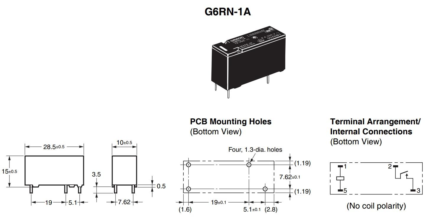 РЕЛЕ 12VDC, Ш10.0*Д28.5*В15.0мм, Ток коммутации 8A, OMRON G6RN-1A-12VDC, 4pin