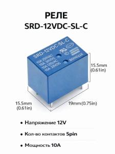 РЕЛЕ 12VDC, Ш15.0*Д19.0*В15.0мм, Ток коммутации 10A SRD-12VDC-SL-C 5pin