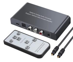 Конвертер Цифро>Аналоговый Аудио Оптический-Коаксиальный RCA Toslink Сигнал в 2*RCA(F)+выход наушников+регулятор громкости+ПДУ+кнопки