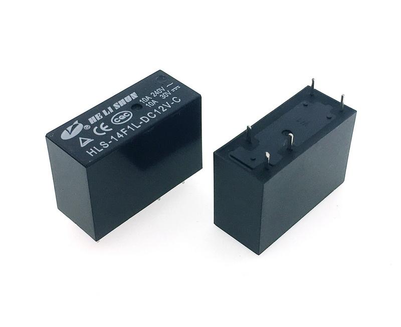 РЕЛЕ 12VDC, Ш12.5*Д29.0*В20.0мм, Ток коммутации 10A 5pin HLS-14F1L (1-группа перекидных контактов)