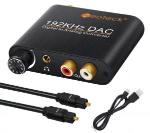 Конвертер Цифро>Аналоговый Аудио Оптический-Коаксиальный RCA Toslink Сигнал в 2*RCA(F)+выход наушников+регулятор громкости 192KHz DAC