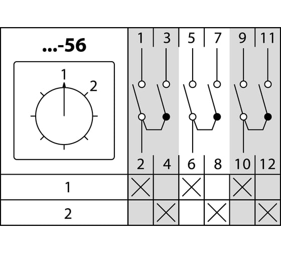 ПЕРЕКЛЮЧАТЕЛЬ КПУ (0-1 6p) LW26-20 C12/6 (OFF-ON 1p), Номинальный ток 20А, 12-групп-контактов-ON-OFF