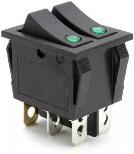 ПЕРЕКЛЮЧАТЕЛЬ УСТ.:28*22мм ДВОЙНОЙ 2-ПОЛОЖЕНИЯ С/Ф 6PIN 15A С ПОДСВЕТКОЙ ЗЕЛ+ЗЕЛ SWR 2101E-1C (ГЛАЗОК ПОДСВЕТКИ)