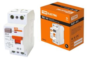 ВЫКЛЮЧАТЕЛЬ ДИФФЕРЕНЦИАЛЬНЫЙ УЗО TDM ВД1-63 2Р 25А 30мА (Только отключение тока утечки)