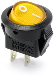 ПЕРЕКЛЮЧАТЕЛЬ КРУГЛЫЙ D20мм 220V 3-КОНТАКТА С ПОДСВЕТКОЙ ЖЕЛТЫЙ 6A SWR 101-8C
