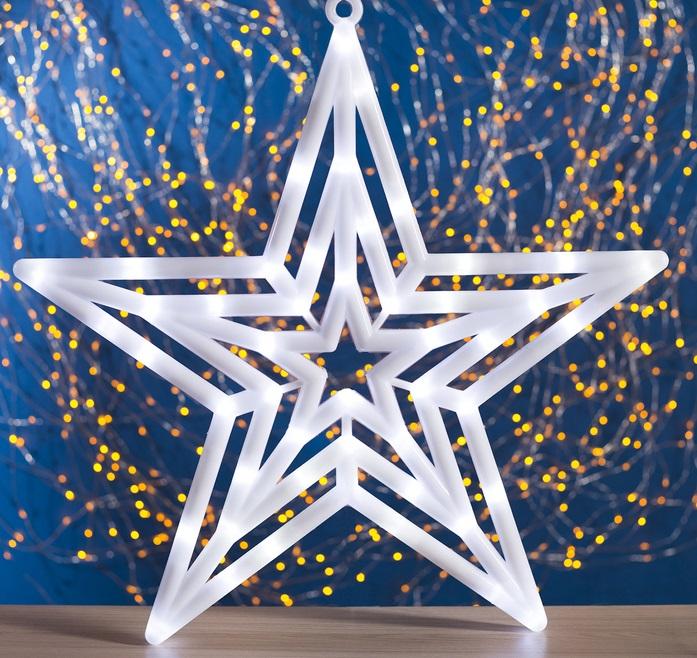 Фигура "Звезда" d=60 см, пластик, 30 LED, 220V, контрол. 8р. БЕЛЫЙ 676355