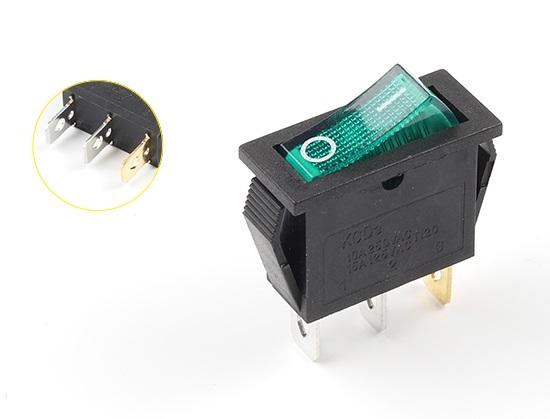 ПЕРЕКЛЮЧАТЕЛЬ УСТ.:28*11мм 2-ПОЛОЖЕНИЯ С/Ф 3PIN ON-OFF С ПОДСВЕТКОЙ-220V ЗЕЛЕНЫЙ 15A SWR 101-1C3