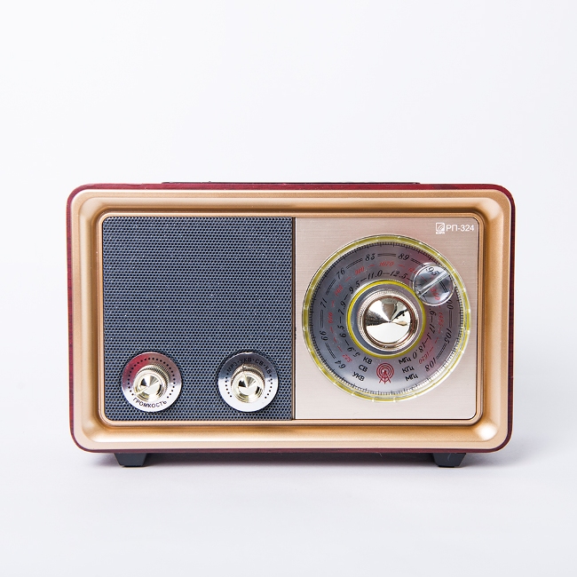 РАДИОПРИЕМНИК БЗРП РП-324, УКВ/СВ, 220V/R20х4, USB,microSD, AUX, светлый, 23х11х15.5см