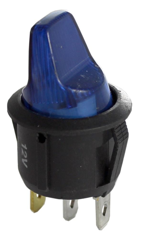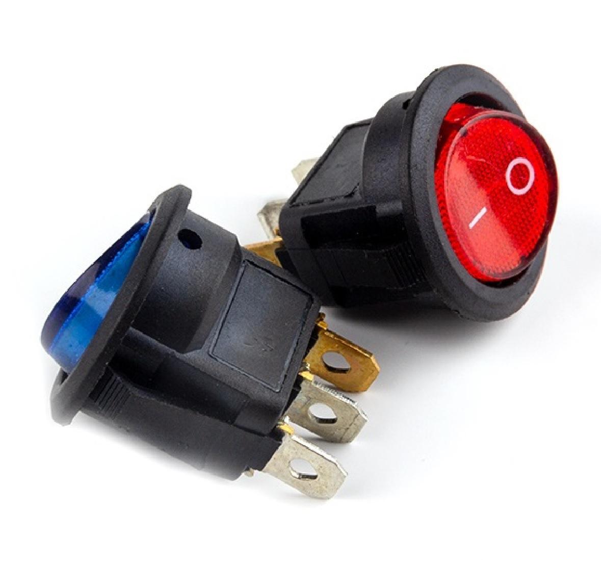 ПЕРЕКЛЮЧАТЕЛЬ КРУГЛЫЙ D20мм 12V С ПОДСВЕТКОЙ 3-КОНТАКТА RWB-224 16A СИНИЙ