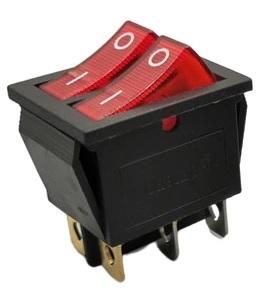 ПЕРЕКЛЮЧАТЕЛЬ УСТ.:28*22мм ДВОЙНОЙ 2-ПОЛОЖЕНИЯ С/Ф 6PIN 16A С ПОДСВЕТКОЙ КР+КР KCD8