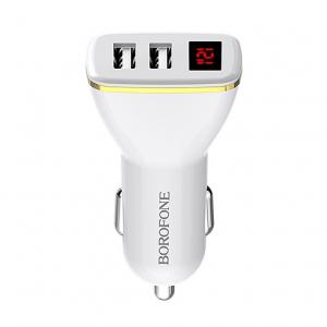 АДАПТЕР ПИТАНИЯ В ПРИКУРИВАТЕЛЬ 5.0V 2.1A USB*2 + ВОЛЬТМЕТР Borofone BZ11 белый
