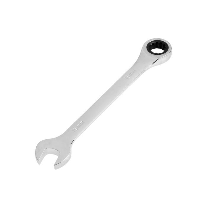КЛЮЧ КОМБИНИРОВАННЫЙ ТРЕЩОТОЧНЫЙ 15MM БЕЗ ШАРНИРА TUNDRA, CrV, полированный, 72 зуба