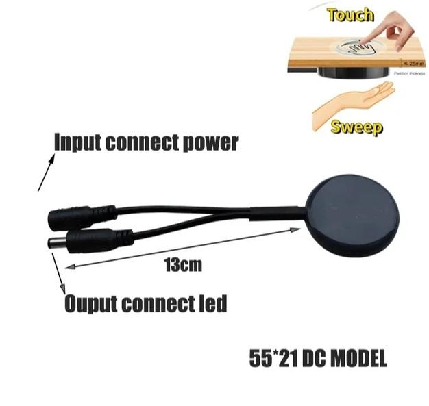 КОНТРОЛЛЕР LED-ЛЕНТЫ МОНОЦВЕТ ПЕРЕКЛЮЧАТЕЛЬ СЕНСОРНЫЙ 12V 5A, 24V 3A, работает через ЛДСП, РАЗЪЕМЫ ПИТАНИЯ С ДВУХ СТОРОН, ЧЕРНЫЙ