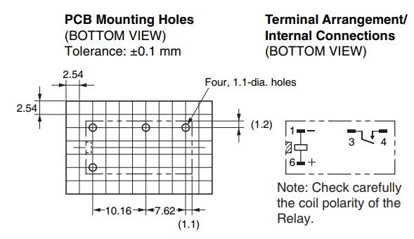 РЕЛЕ 12VDC, Ш10.0*Д20.0*В10.0мм, Ток коммутации 5A OMRON G6B-1114P-US-12VDC 4pin