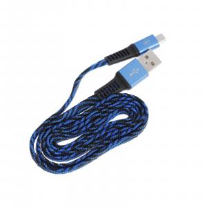 КАБЕЛЬ USB AM-MicroBM 1,0M 1А, оплётка нейлон, разные цвета, прорезиненный разъем