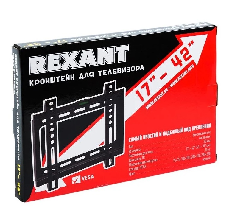 КРОНШТЕЙН ЖК 17-43" фиксированный, VESA 50*50, 75*75, 100*100, 200*200 REXANT ЧЕРНЫЙ