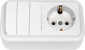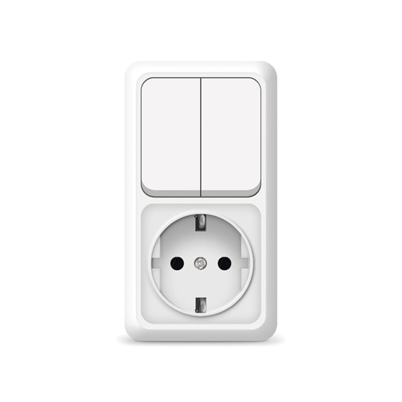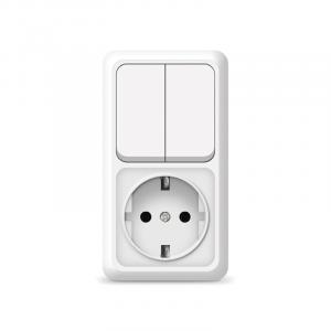 БЛОК БЕЛЫЙ ОП ВЫКЛ. 2-КЛ +РОЗ. С/З Олимп вертикальный